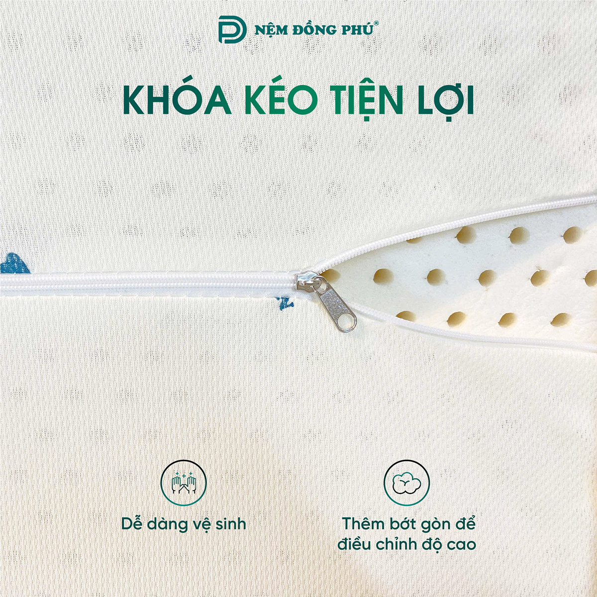 - Phần áo gối được may từ vải gấm cao cấp, bề mặt mềm mịn, bền màu và ít bám bụi. Thiết kế khóa kéo tiện lợi giúp tháo rời dễ dàng, thuận tiện cho việc vệ sinh và bảo quản.